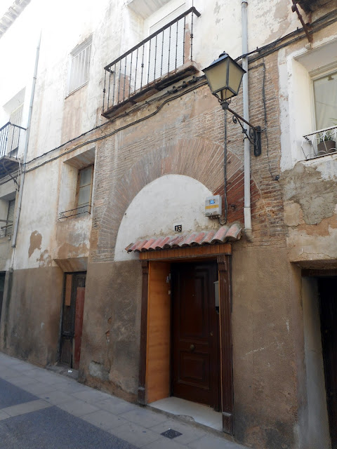 Según el catastro, este tramo intermedio encalado y con arquillos pertenece a la casa de atrás, la de la siguiente foto, pero véase también la discontinuidad de la arquería y la cornisa con el tercer tramo de fachada:
